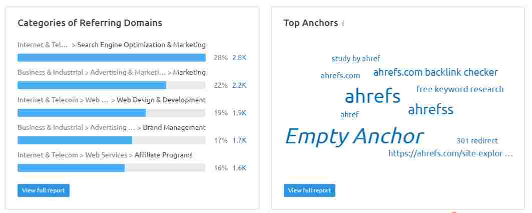 下图左边是网站的引用域类型汇总,右边则是网站外链的最受欢迎的锚文本。
